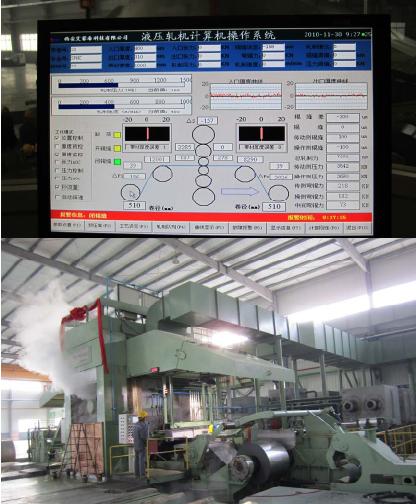 我公司为山东新美达科技提供的1380/1200两套六辊可逆高速轧机AGC系统于2010年12月20日顺利验收。成品精度0.230±0.003mm,轧制速度750M/Min。系统设计水平处于国内领先水平,同等于国外进口轧机AGC系统。AGC与传动系统、PLC过程自动化工艺系统实现工业以太网络连接,实现轧机自动降速、准确停车。张力、速度、厚度等工艺参数自动给定,系统采用流量控制、带头/带尾15M自动进入目标厚度。大大提高轧机运行时间,实现产量高、质量高、成品率高 。