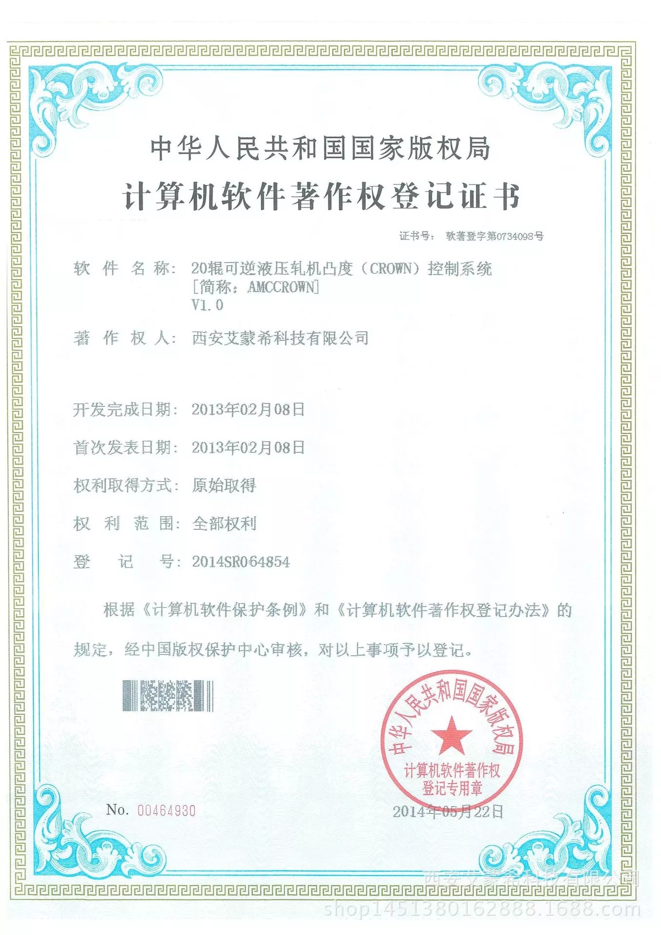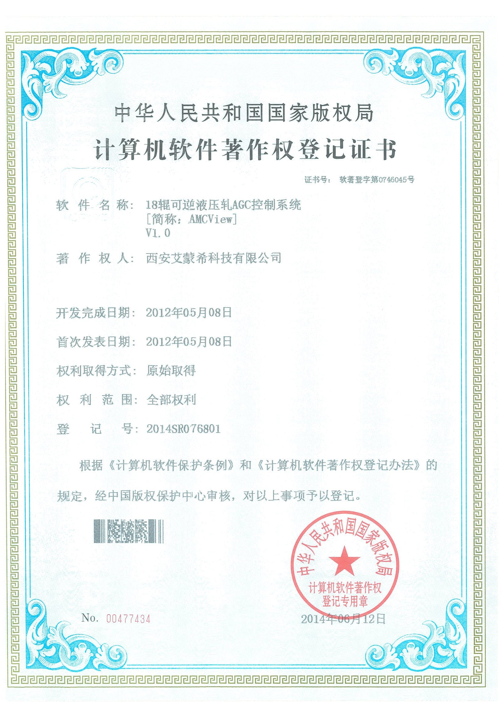 软件著作权:18辊可逆液压轧机AGC控制系统